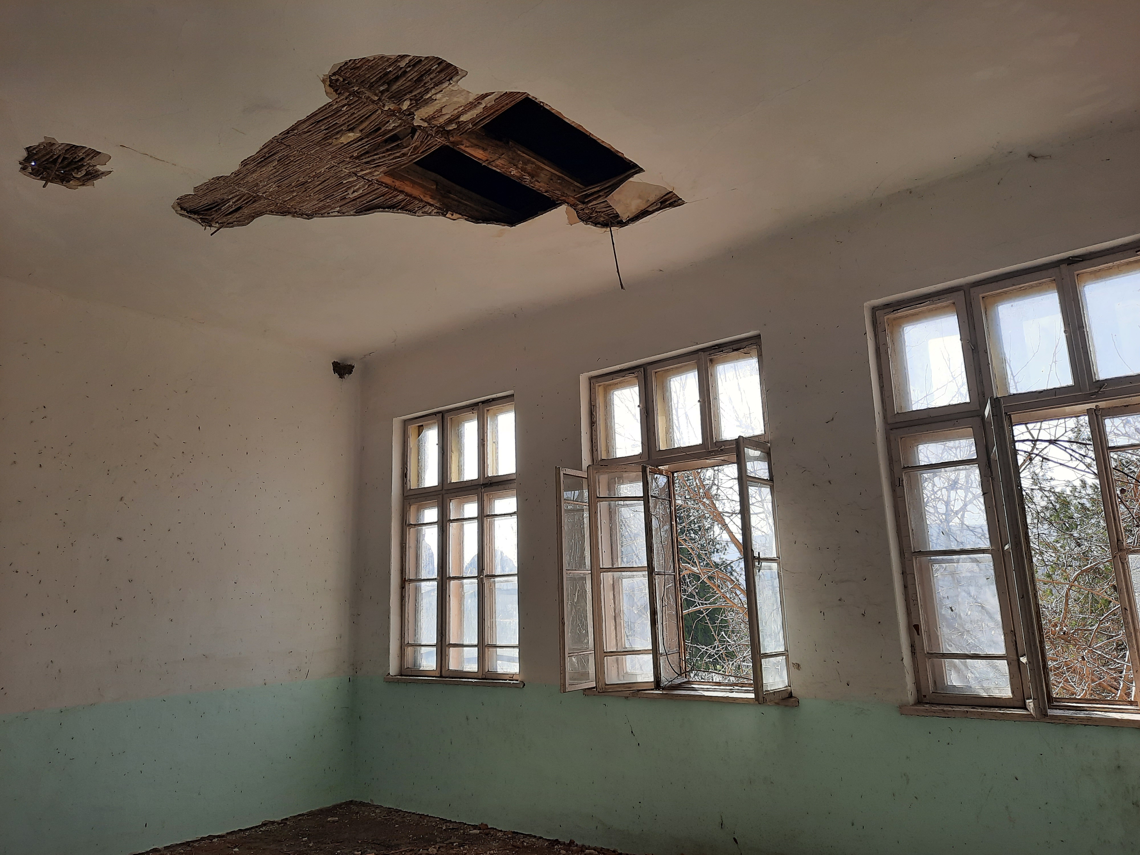 Изградена от гранит, но с вече течащ покрив. Вътре разбито и ограбено де що има метал. Алуминиевата дограма на входа си стоеше.