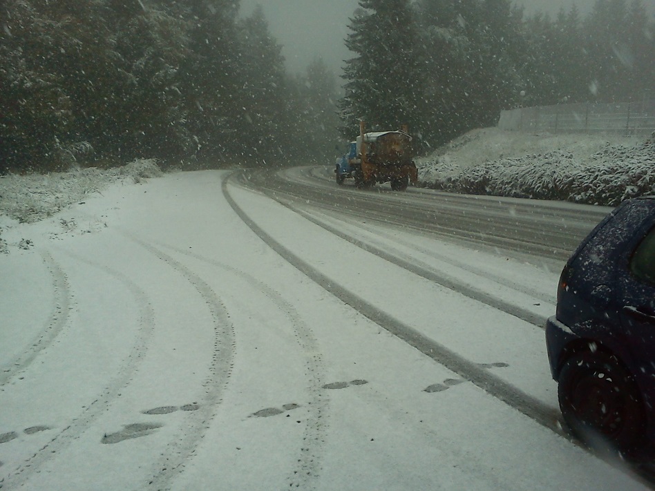 Честит ни първи сняг! На билото е 2-3 см.Задържа се на пътя..Това от север...Сега ще видиме от юг как е...