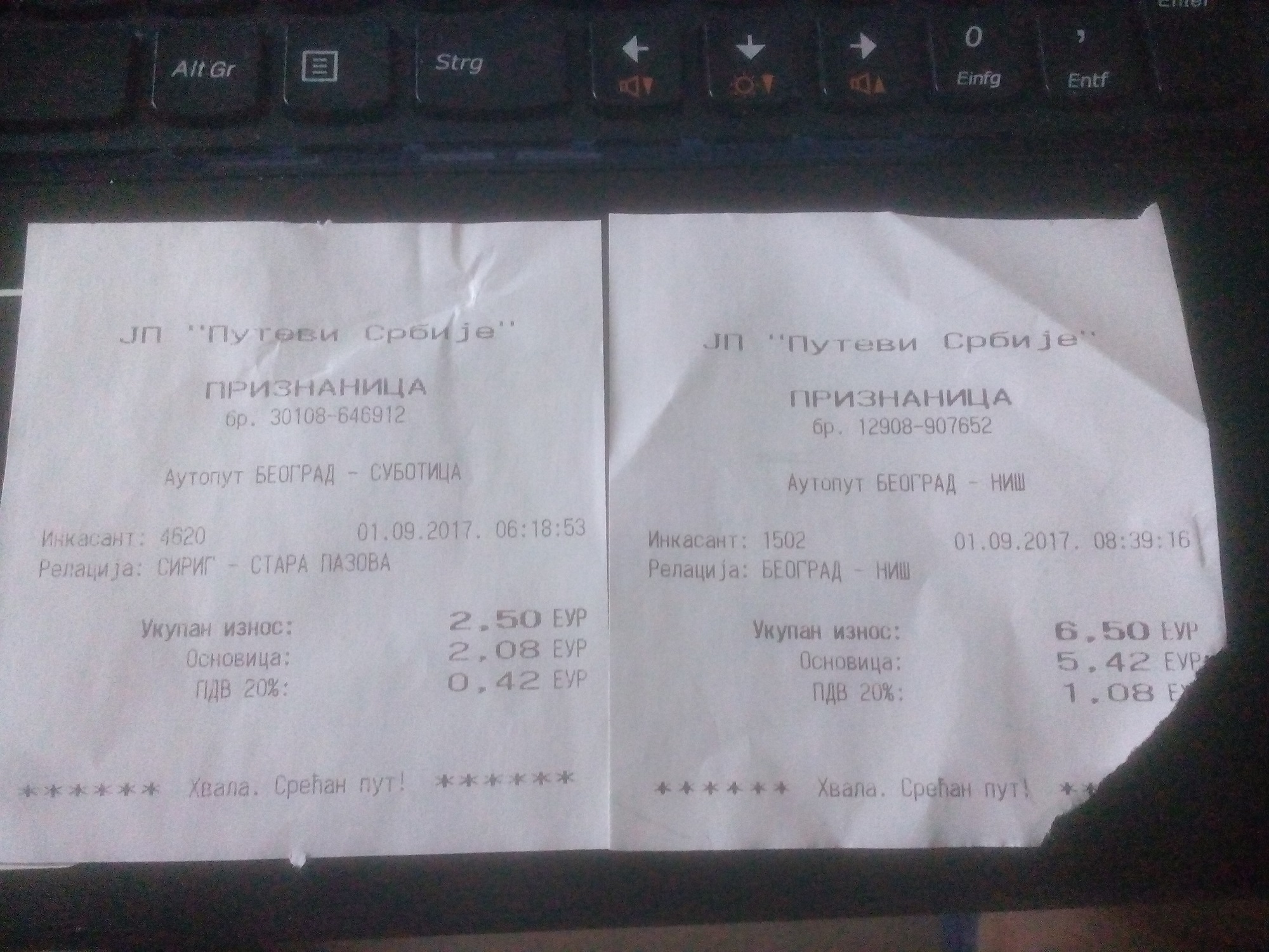 Оттатък Белград, на бележката ми излезе 127км/ч, но не ми го включиха в сметката. Може би, като за първи ден, е било на аванта.
