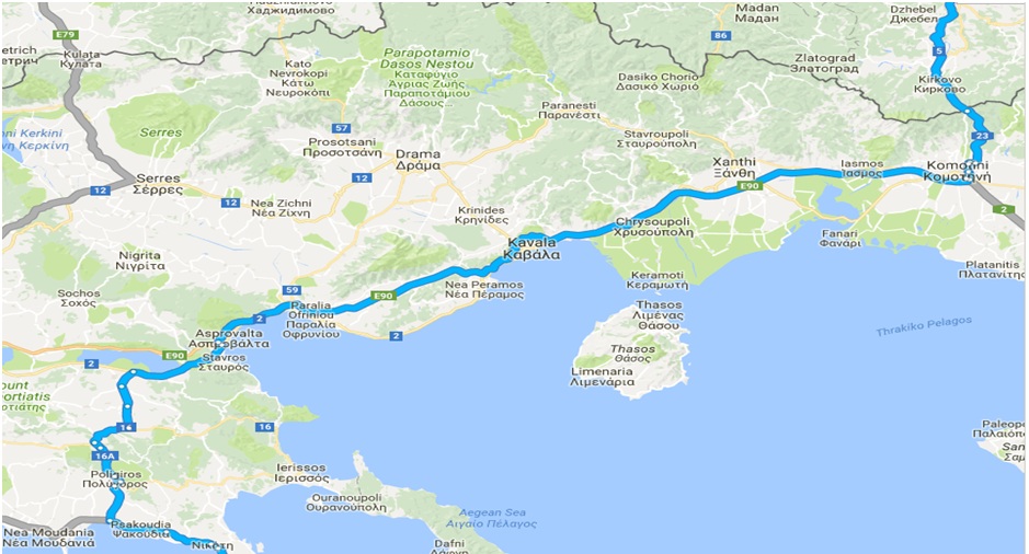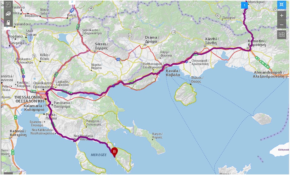 2) По-дълъг път ми е през Солун, но дотам е само магистрала, пък и като гледам надолу до началото на първия ръкав май пак е магистрала или поне първокласен път.