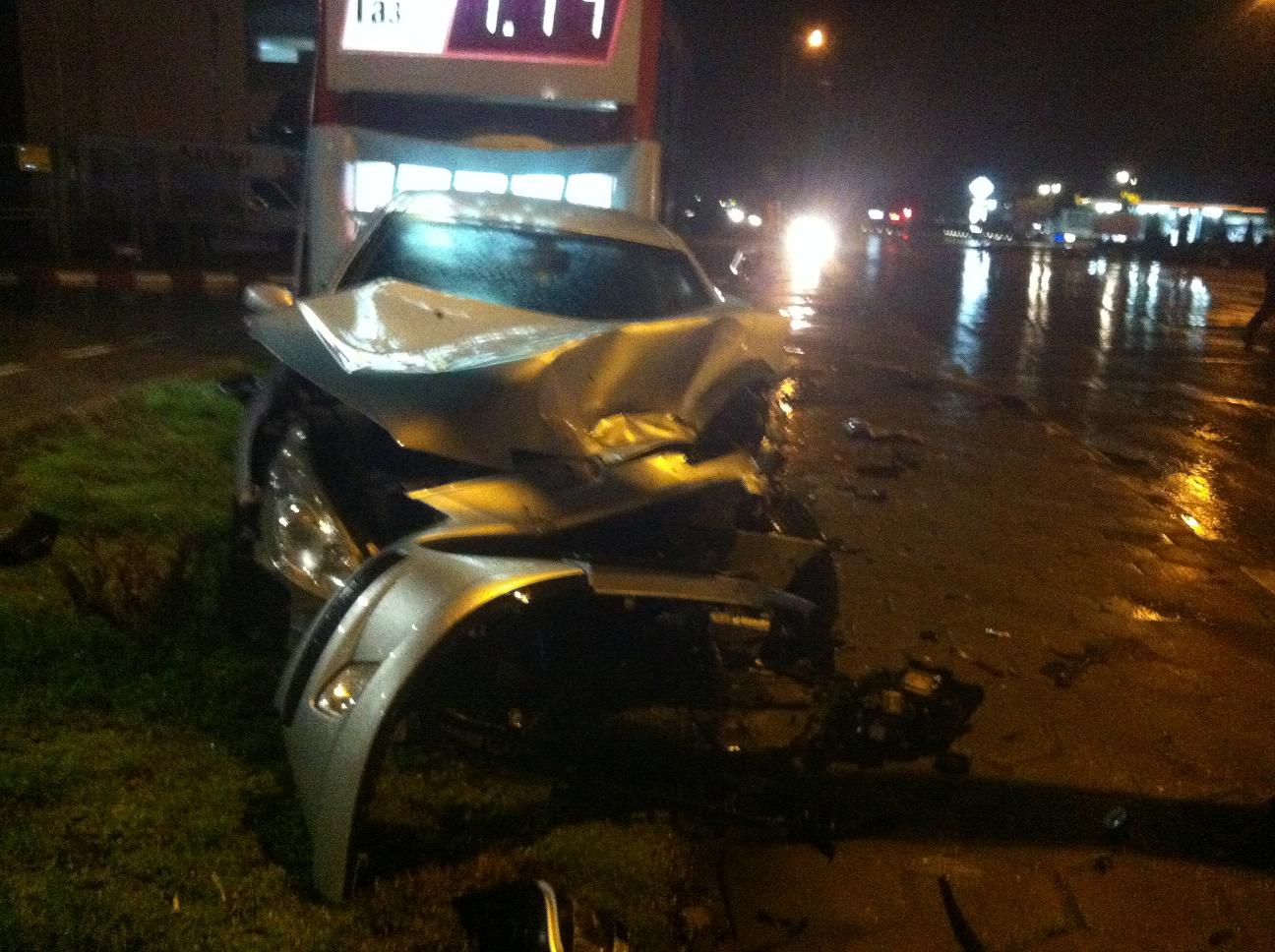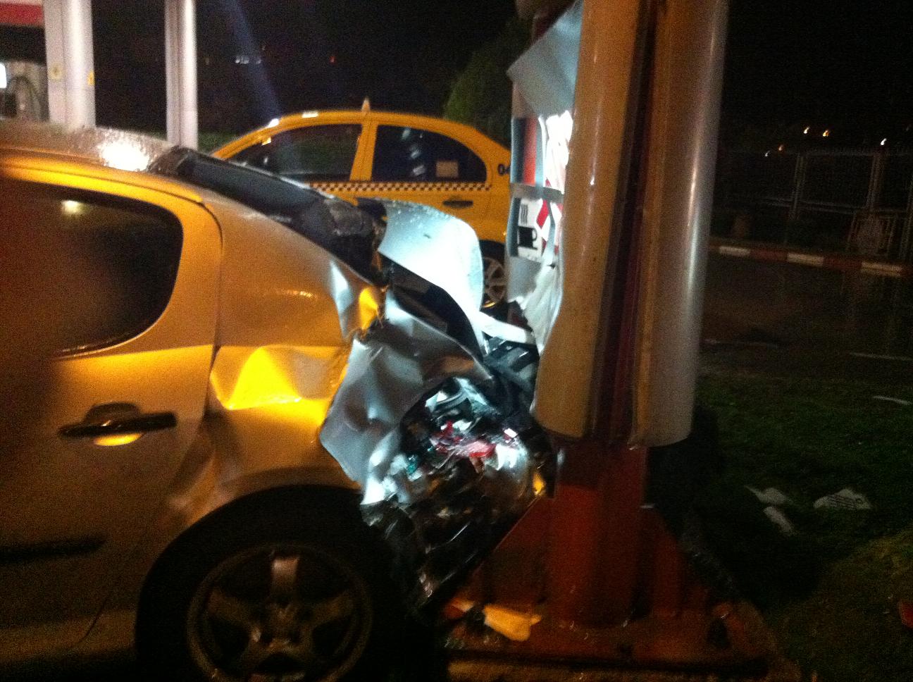 Колата е на леля.. Лично съм я паркирал на тротоара до една бензиностанция за продаване.. Един отсреща идва с бясна скорост със BMW Е60 и губи контрол и се удря в паркираното Пежо.. Бута го назад минимум 7-8 метра и го подпира на таблото за ценоразпис.. Върти се няколко пъти и спира в средата на пътя.. Пътниците от другата кола бягат със друга кола която кара зад тях (приятели)..Най-важното е че няма жертви.. Не съм снимал другата кола