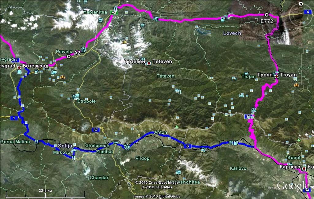 Колеги, може ли някой с GPS да ми каже кой най-подходящия маршрут ,щото bgmaps-a и google earth ми дажат разли4ни предложения .