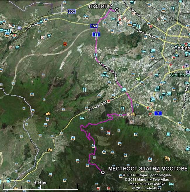 От Люлин излизаш на околовръстното, подминаваш кръговото за новата магистрала (т.е. продължаваш по околовръстното), след Суходол и Горна баня е кръстовището с бул. "Цар Борис III" (пътят за Княжево, Владая, ... ) - на него продължаваш направо, след около 700-800 м е първата възможност за завиване надясно - използваш я (т.е. завиваш) и продължаваш само направо докато може (около километър и половина), завиваш надясно, и после никакво отклонение - все направо (което е малко пресилено за завоите-серпентини