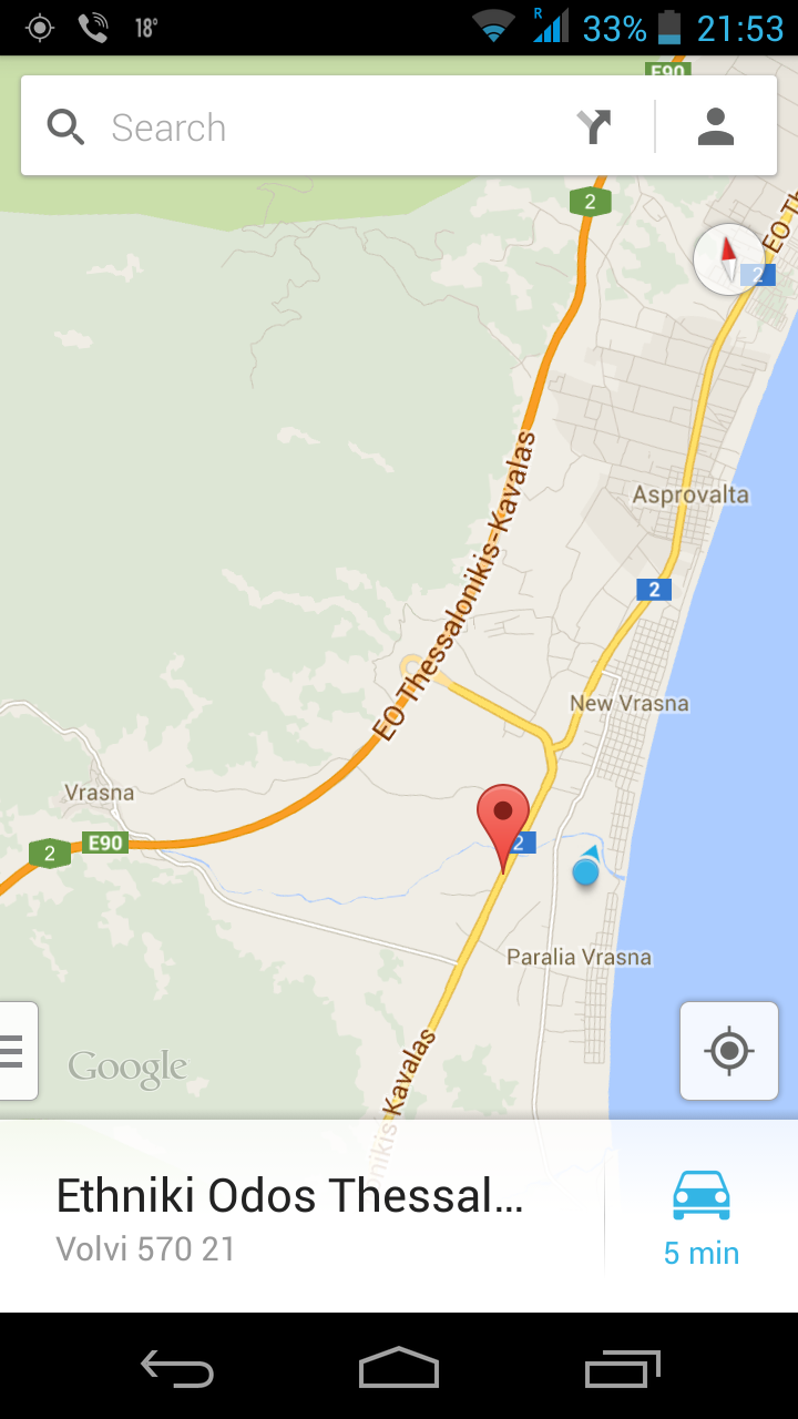 aми огрaничението беше 60, ние минaхме с 90 видяхме кaмерaтa в последния момент. Кaмерaтa е в Неa Врaснa. Горе долу тук.