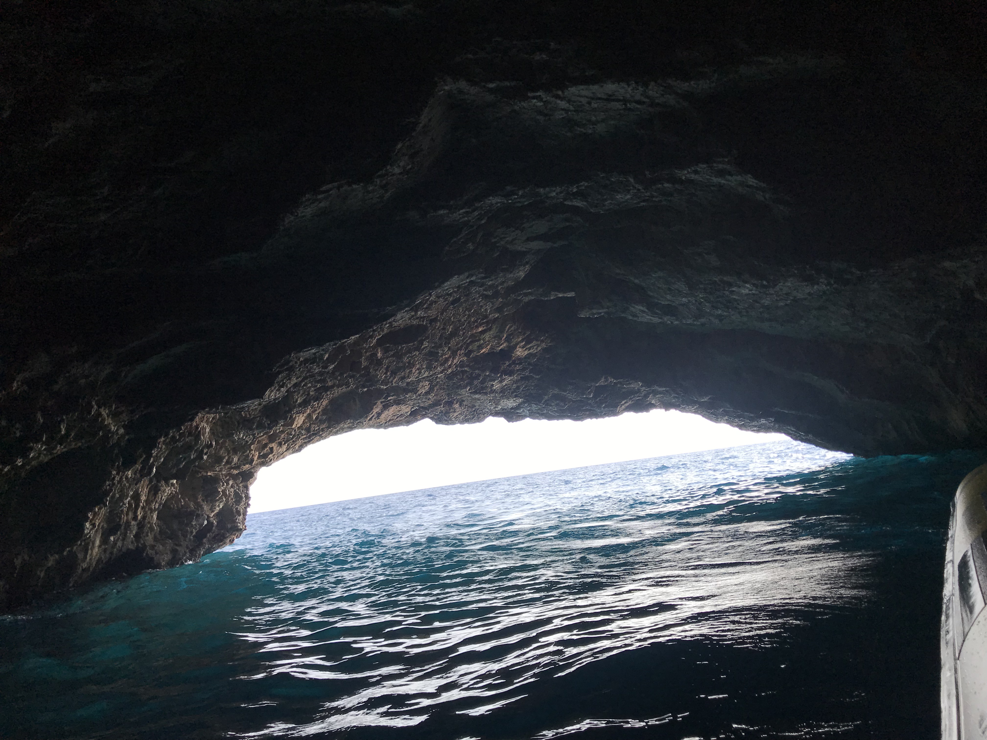 За сметка на това обаче се качихме на обиколка с лодка, която трае 3.5 часа и ни повози из целия залив, като дори излезе извън залива и ни закара до синята пещера, където и поплувахме: