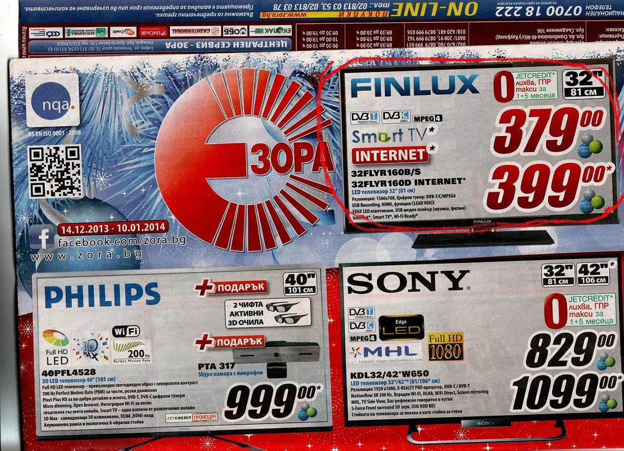 Разгледай в ЗОРА - това е брошурата от утре, ако имаш познат там - мисля че служителите ползват 10% отстъпка, може да ти го купи твоя познат. Иначе от телевизори НЕ разбирам.