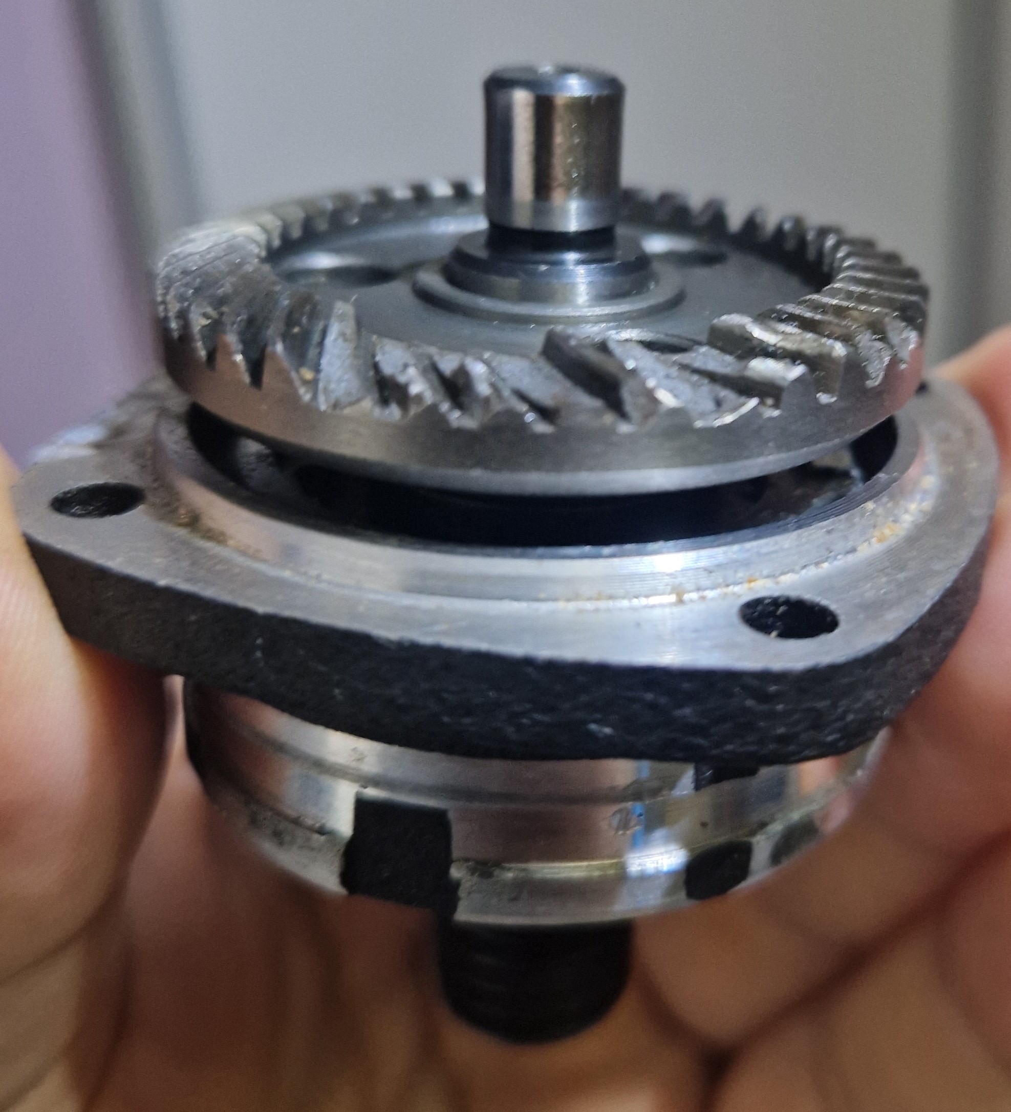 Повече обаче ме смути счупените зъбци. Не знам причината каква е, но това е признак ( ако не е влязло чуждо тяло ) за калпаво качество или технологията за направата на самата зъбчатка . Напоследък нашумя една техника за направа на такива елементи с пресоване на метален прах и изпичане ( сега не се сещам как се наричаше самата технология)