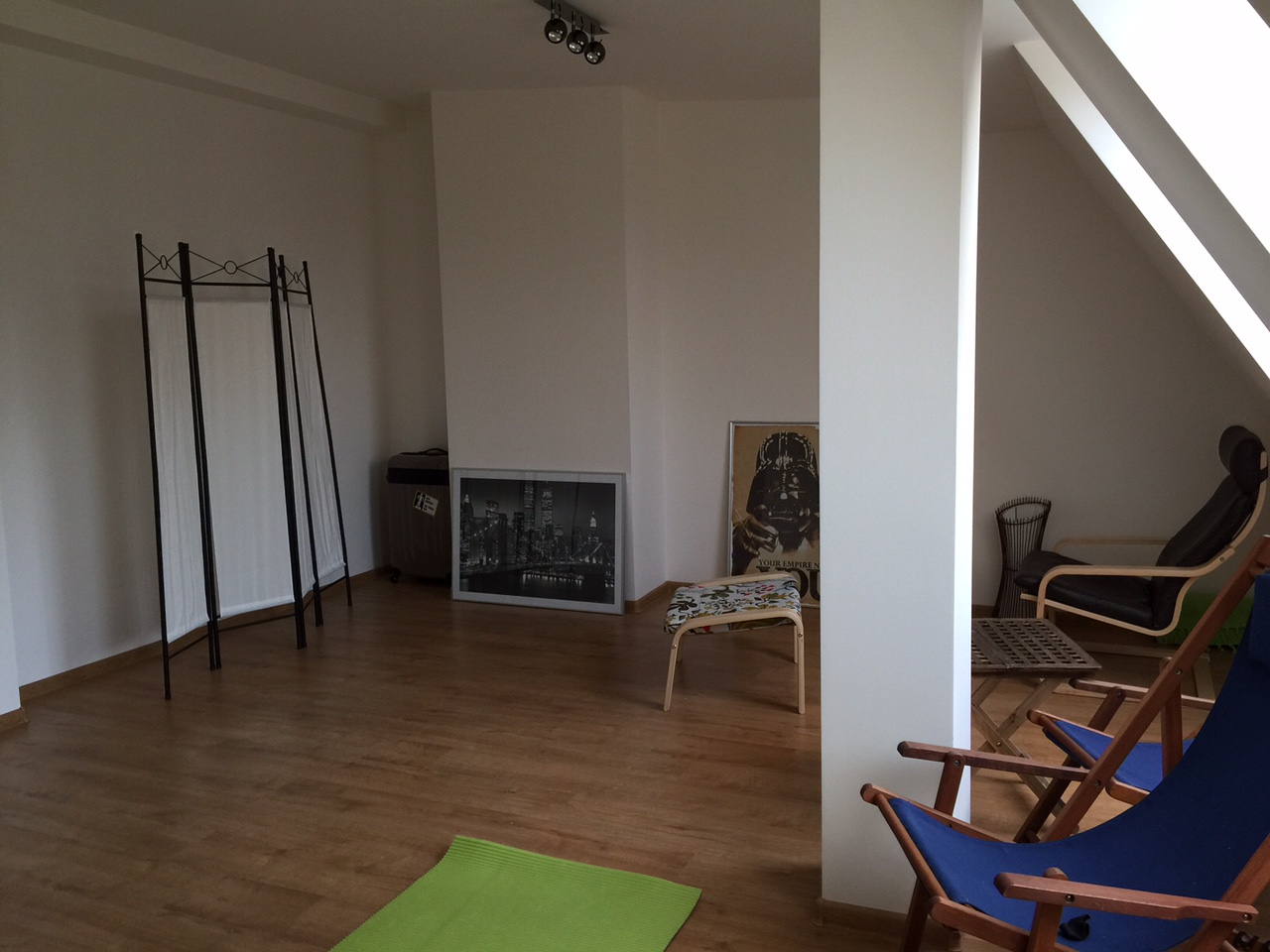 Прикачам и снимков материал, стаята още не е обзаведена, само е пълна със шезлонгите от терасата....