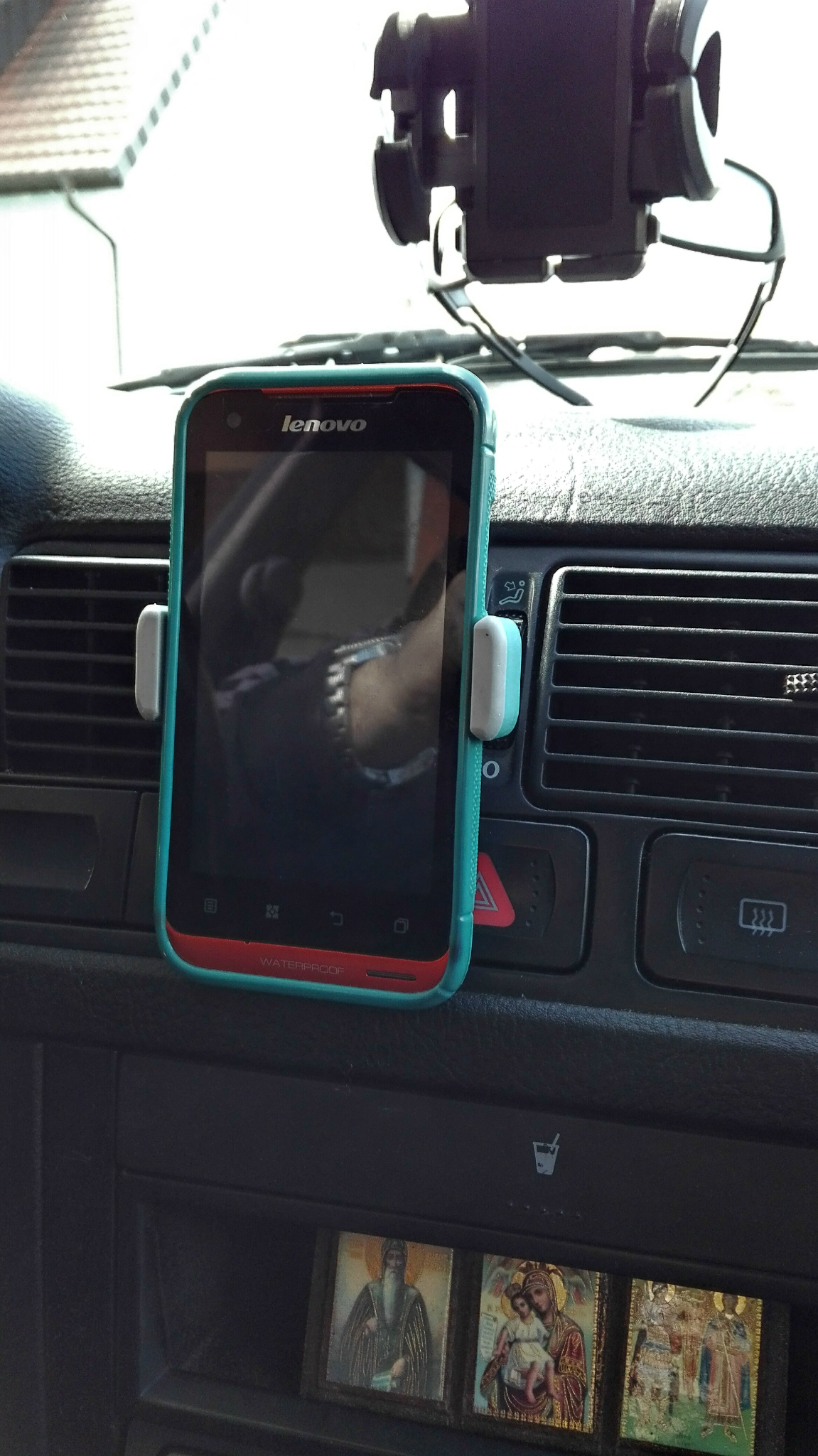 Горната Стойка не я ползвам почти, телефона се сварява.,а на тзинкто е пуснат климатика му духа студено и го охлажда. Навигацията е iGO, последно време ползвам Navigon. Намери някой да ти я сложи.