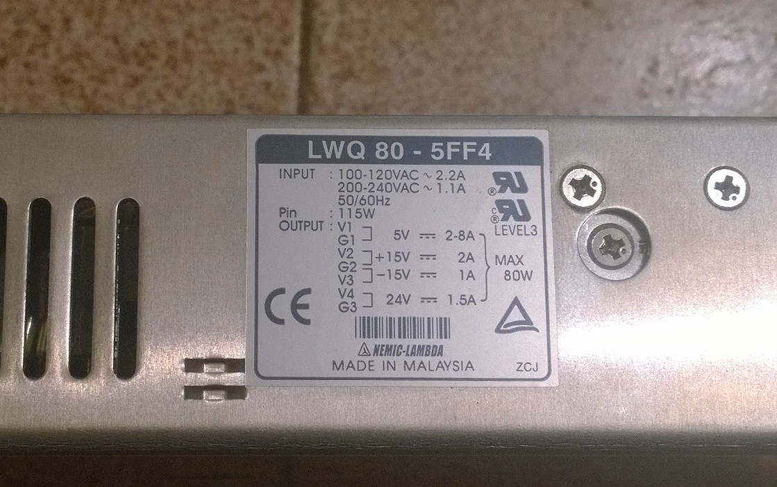 Индустриално, импулсно захранване и то нелошо. Отстрани на планката трябва да има модел и от там в Гугъл параметрите.
