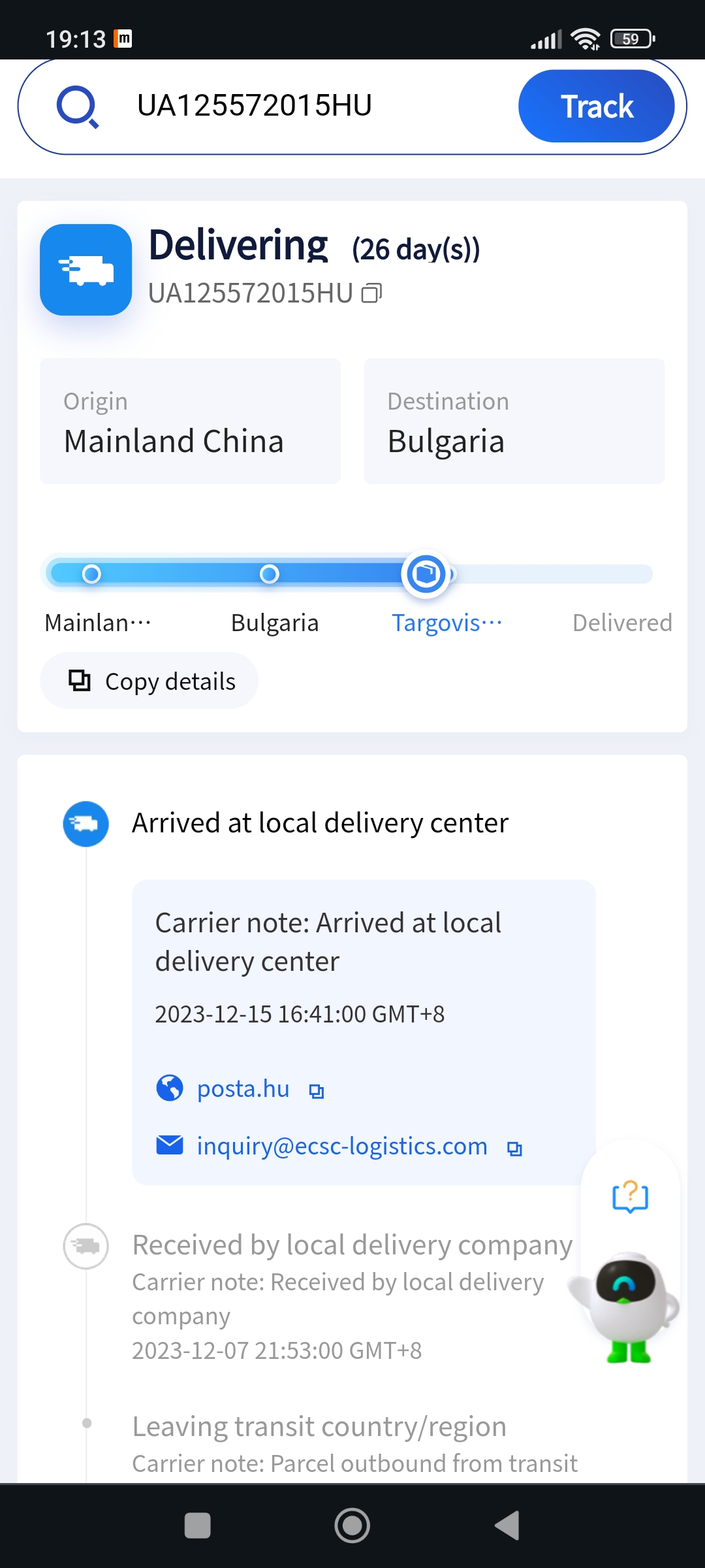 Имам една пратка излязла от Унгария преди 10 дена и се чудя къде да я търся...