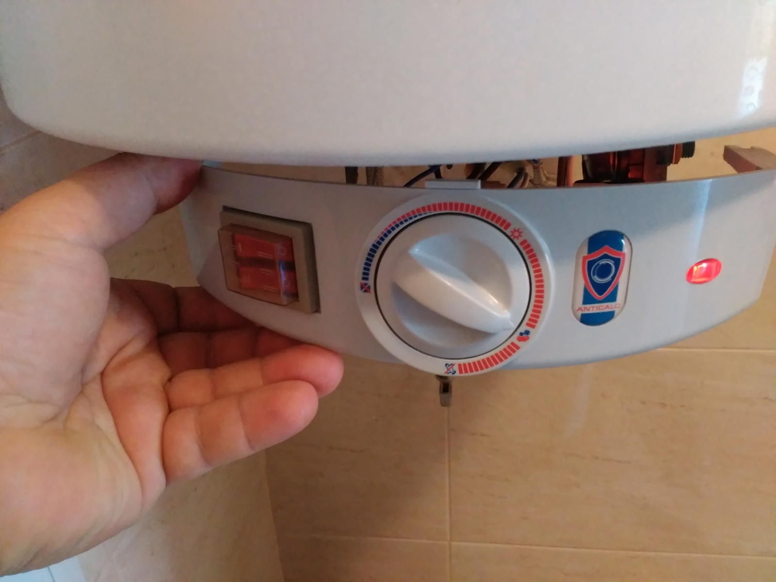 Индикаторчето е червената светлина най-вдясно на първата снимка. Анодът не е вързан към електрическата верига и не се проверява с бутонче както при някои бойлери. Този бойлер го ползват квартиранти, аз не съм никога, но мисля че когато нагревателя изключи би трябвало и това индикаторче да изключи защото лампичката е свързана с кабели - от едната страна нагревател, от другата страна термозащита - няма логика да има захранване, ако нагревателя няма захранване.