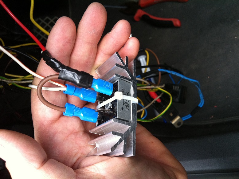 Габаритите на колата са 20 вата, това прави 1,5А общо. За къв чеп са ти повече от един диод, ако не за разклоняване на веригата?!?!?