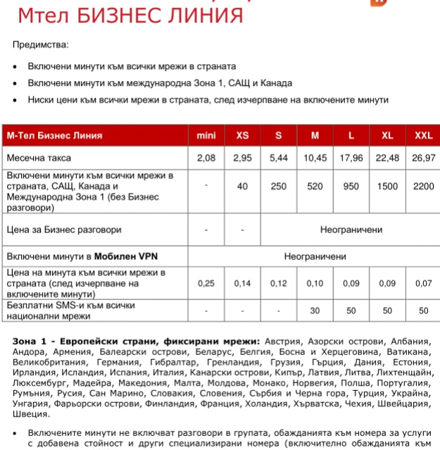 Към колегата Mely - за бизнес плановете на Мтел - ок, но знаеш ли че можеш да си ги направиш и на физически планове картите ти- идва ти доста по-изгодно, за 24лв както казах неограничено в цяла БГ и 5гб нет. За плана на Виваком не видях добре, но ако дават реално неограничени разговори към всички за 17лв на карта е повече от добре. С тоя план явно не съм запознат.