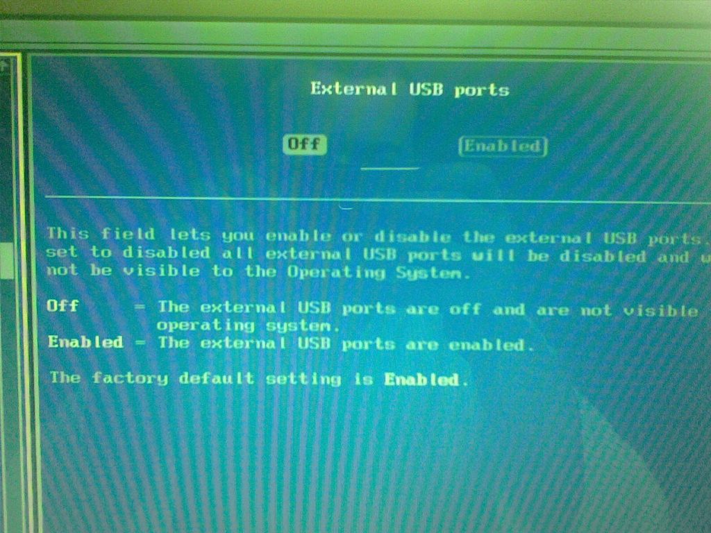 USB-тата са изключени от биоса, а самия биос е заключен за промени и може само да се разглежда.
