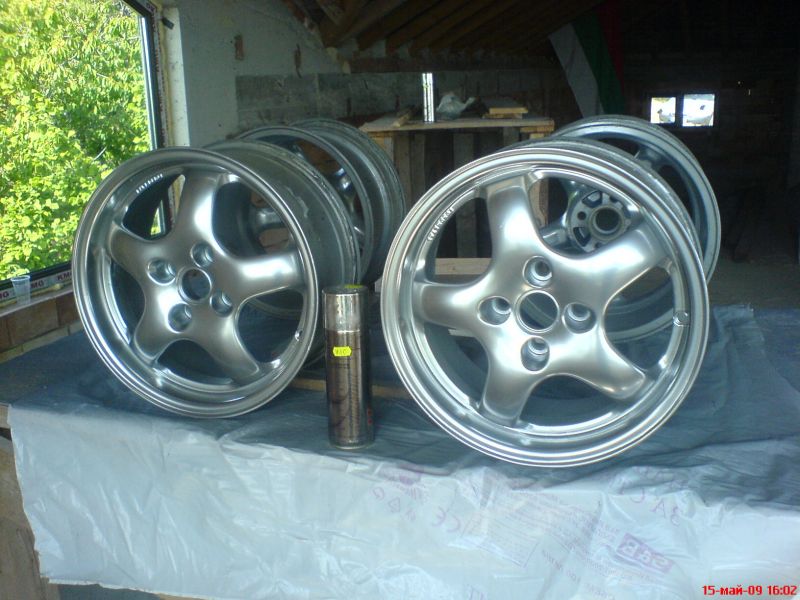 Колеги мисля да си пръсна джантите , но се чудя какъв цвят. Та искам да видя джантите от снимка две как ще седят с боята от джантите на снимка едно. А също така ако на някой му се занимава може да ми ги направи с тъмно сиво да видя как ще седи.