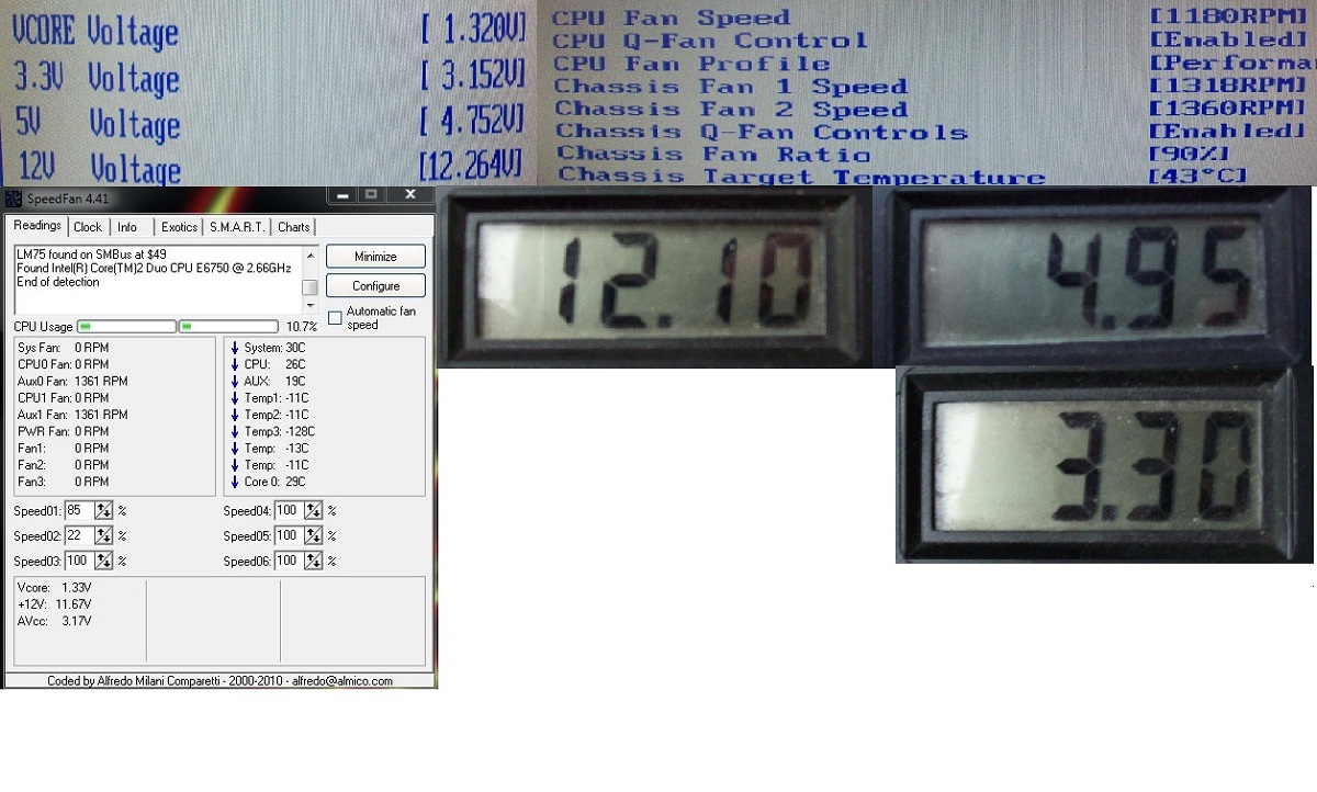 Ако имаш възможност закачи друго (читаво) захранване и съм сигурен че напраженията ще са по-добри.