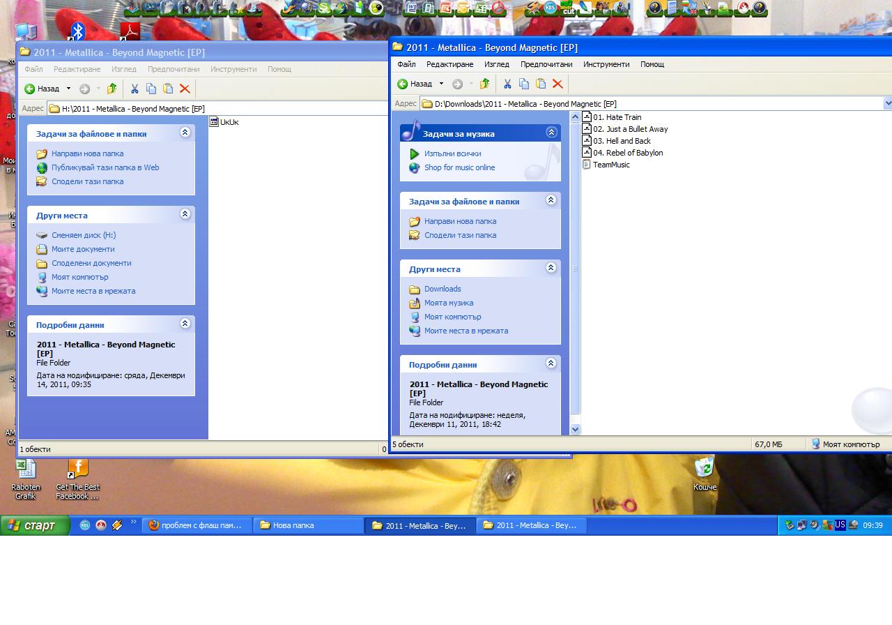 Колега, извинявай че ти ползвам темата - и аз имам проблем с флашката. Моята е 64 GB. Записвам няколко файла - 2-3 филма и една папка с музика. Пускам я на DVD - то и забелязвам че винаги ми възпроизвежда само първия файл който съм прехвърлил от компа на флашката!!! Другите файлове ми ги дава като празни папки. Връщам флашката на компа, първия файл си е ОК и ако искам мога да го изтрия, а в папките на следващите има само един файл "UkUk" който не може да се изтрие и ако искам да го махна трябва да форматирам цялата флашка с HP USB Disk Storage Format Tool. Незнам дали ме разбрахте, ще пусна няколко снимки... Примера е с един филм и една папка музика. Първо съм качил филма на флашката.