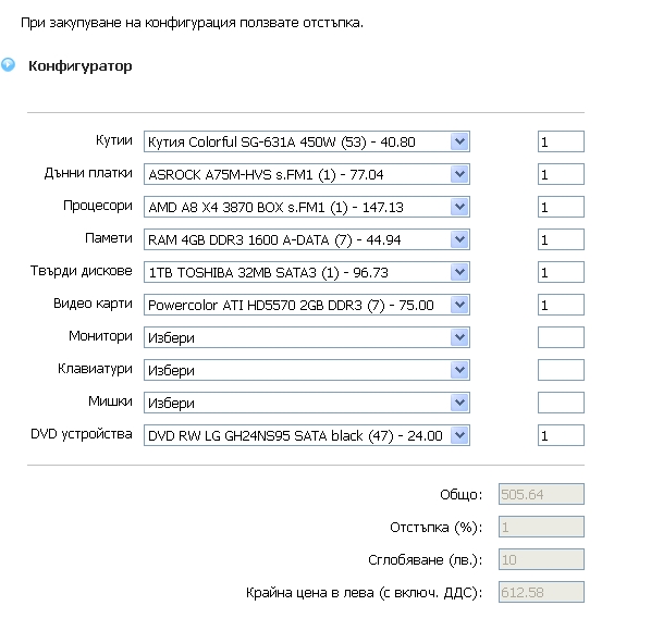 За твърд диск нищо не си казал? Като гледам е към 150 най-евтиният SATA вариант.
