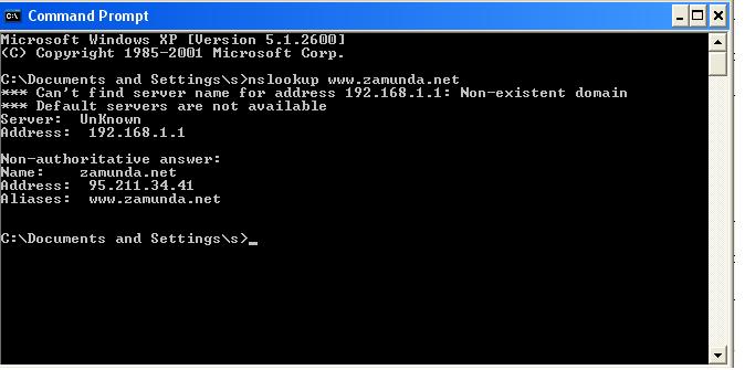 Чудомир написа:В "досовски прозорец" nslookup zamunda.net какво ти отговаря?