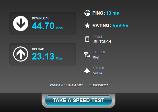 Днес мерих скорост в София, близо до орион. Не знам защо пише Мтел, на Виваком е.