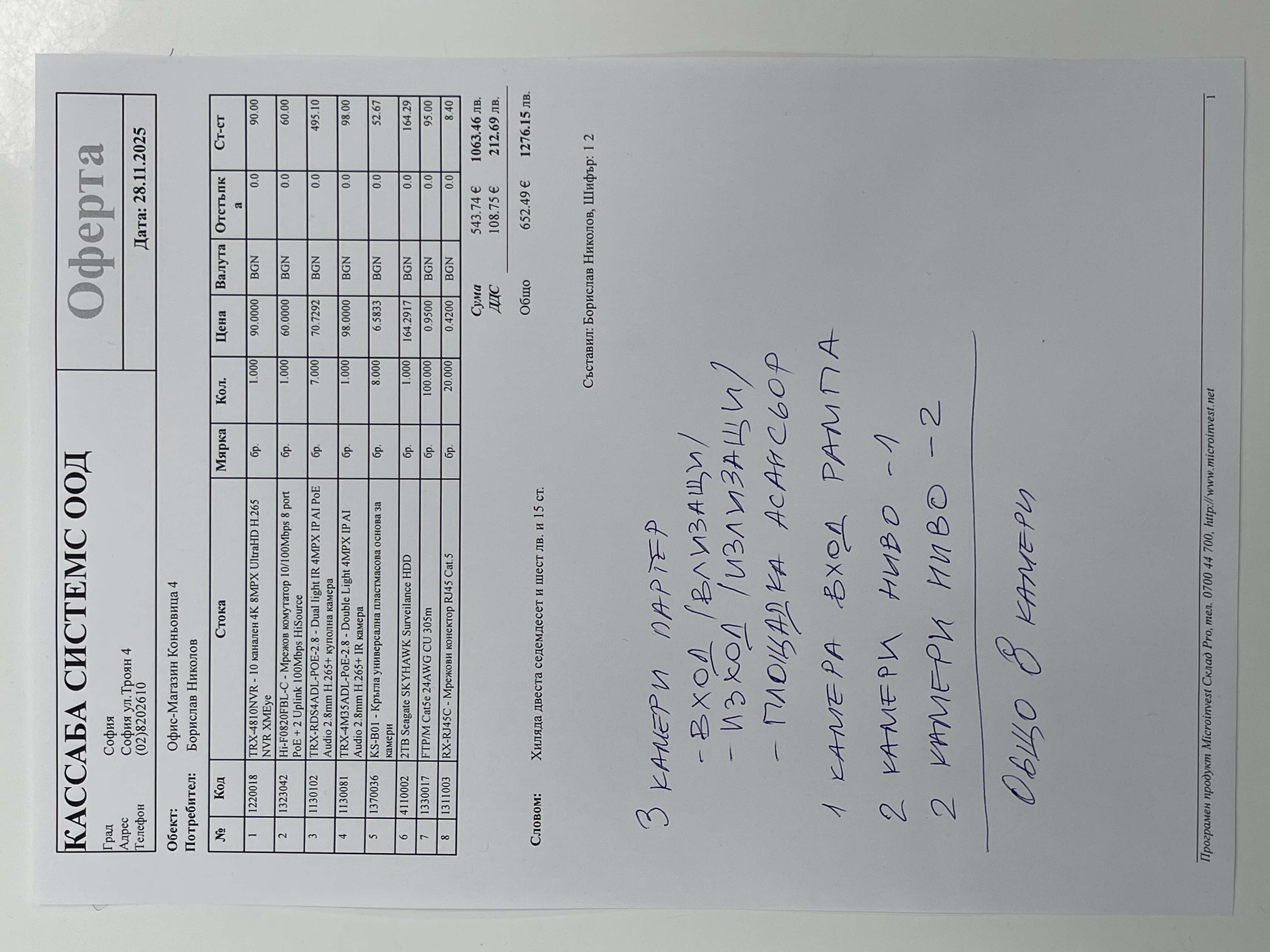 В офертата има и кабели и стойки за камерите и HDD 2 тб.