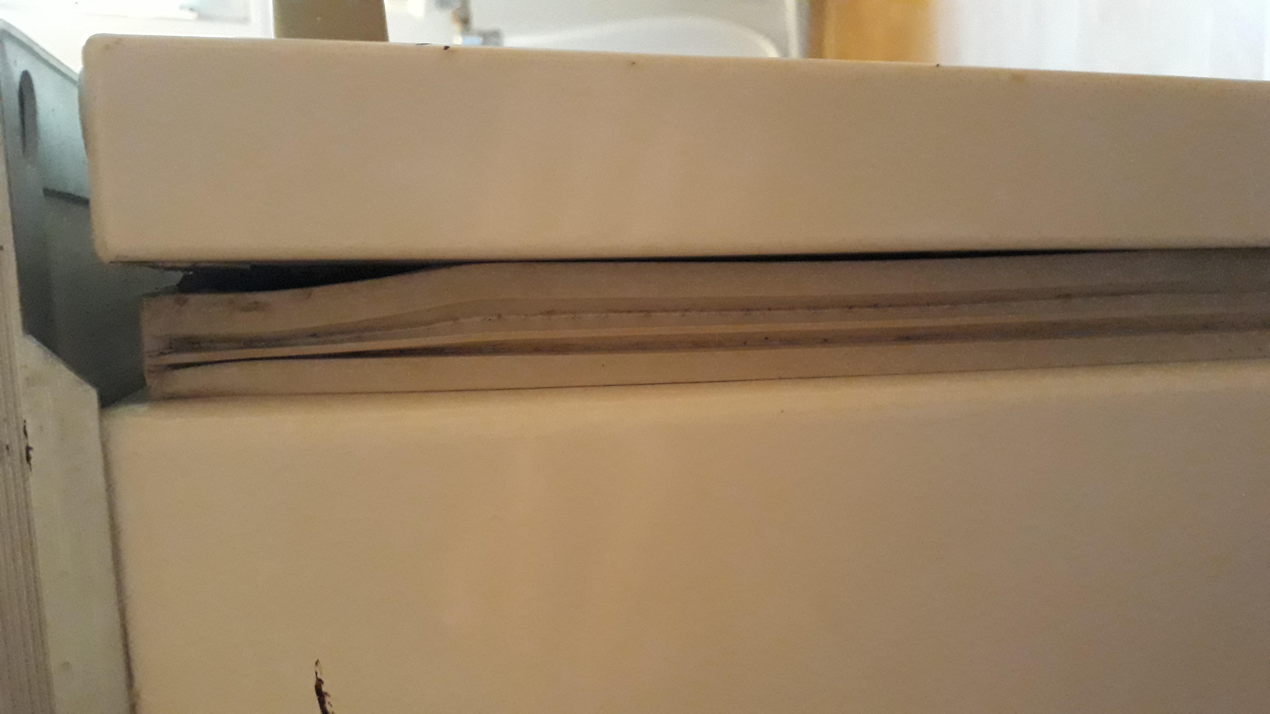 Здравейте колеги. Имам един фризер, който започна да трупа лед над първото чекмедже и като нарастне количеството приема формата на уплътнението. Малко над минимума съм сложил терморегулатора. Като време на работа отношението е 5 мин. работи 15 почива. От какво може да се случва това. В горната част на вратата има 10 см. леко надигнато уплътнения и вътре пластмасовата облицовка е пукната където са навити винтовете закрепващи уплътнението. Може ли оттам да идва проблемът. Благодаря на всички отговорили предварително.
