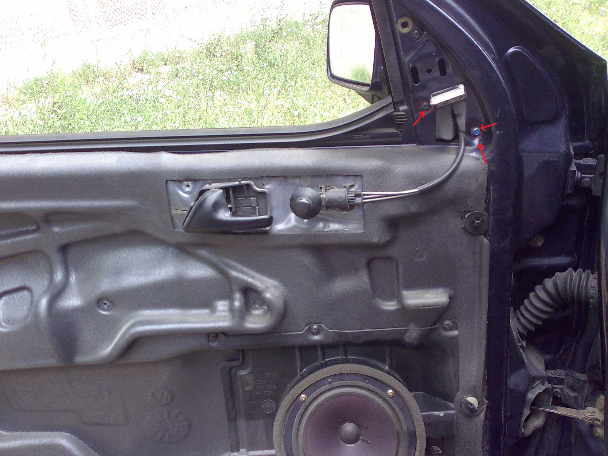 Сваляш черното триъгълниче дето е срещу огледалото от вътрешната страна на вратата и тогава ще видиш винтовете с които е закрепено огледалото