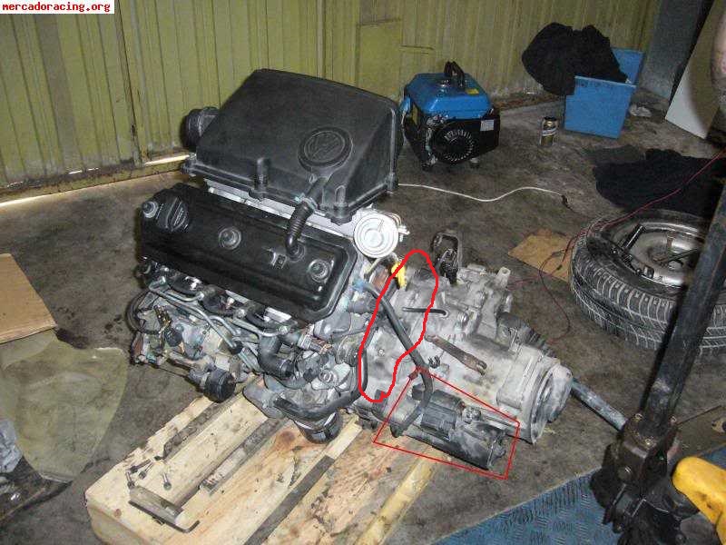 На снимката необръщайте внимание на където е ограден стартера (такава снимка намерих с ограден стартер) въпросното омасляване е на по дебелата червена линия.