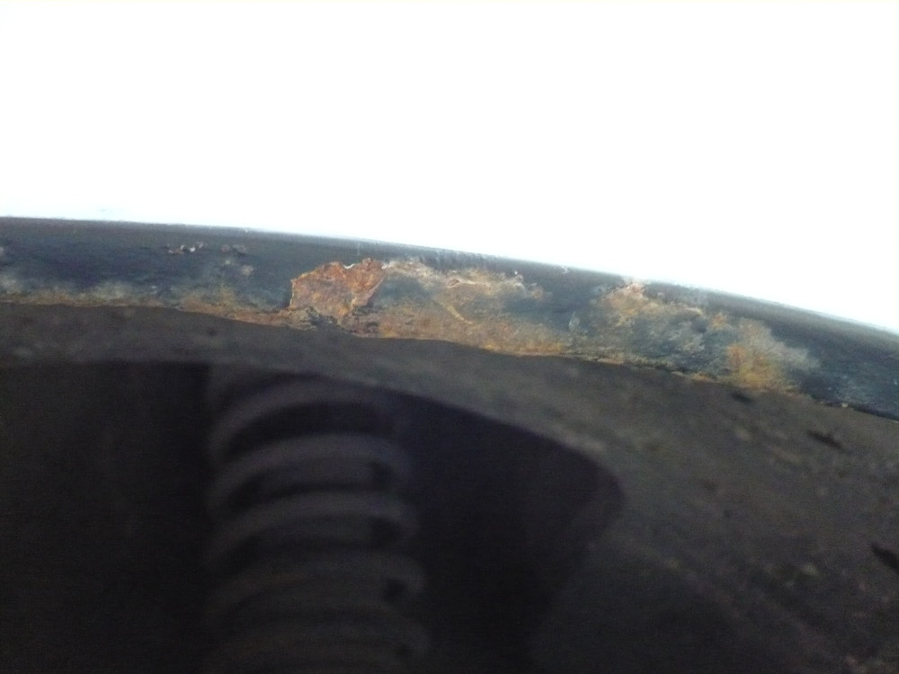 Като сменях тапи по пода, забелязах, че покритието (боди?) се е напукало и пада (вижда се на снимките). Освен това има поражения от удари и крикове. Веждите на калниците също са почнали да ръждясват.