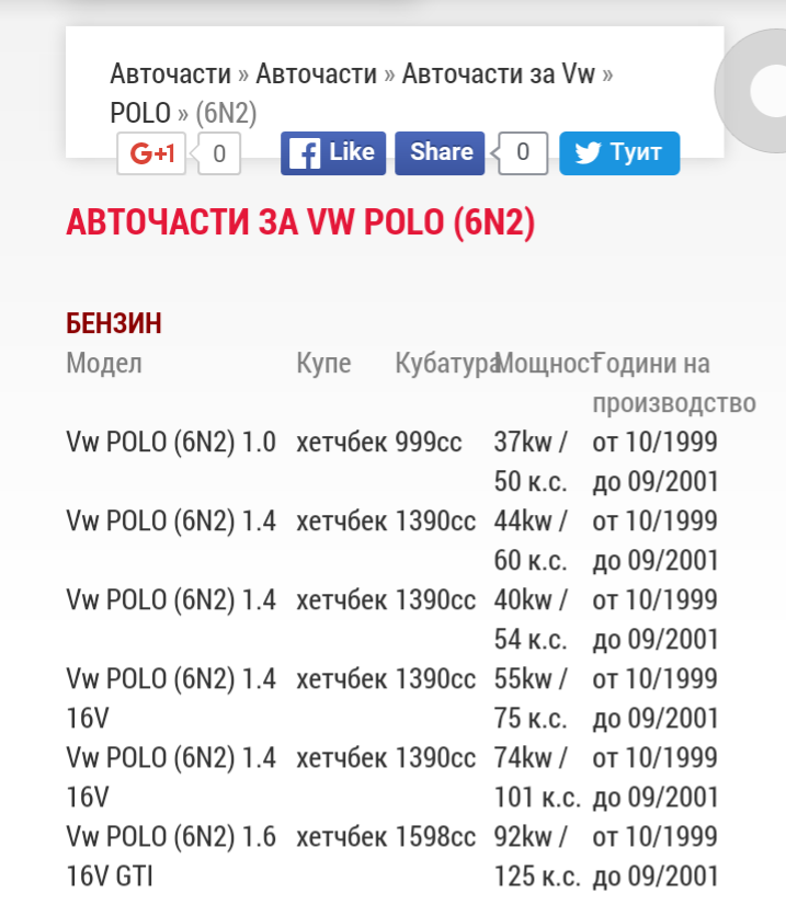 - Автомобил: Polo 6N2