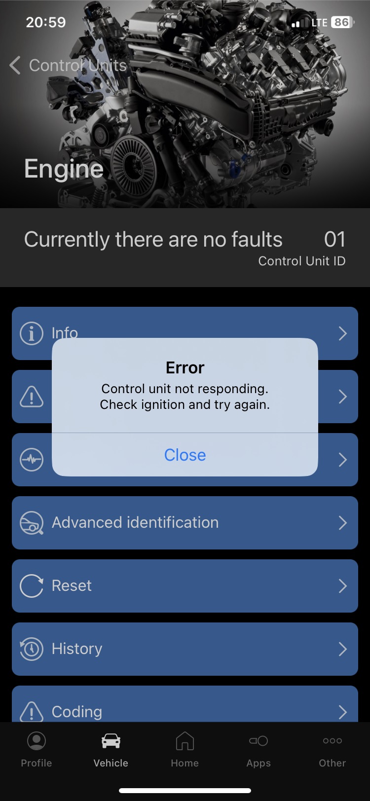 Още при свързването ме кара да й напиша VIN-а и след това модулите не са активни.