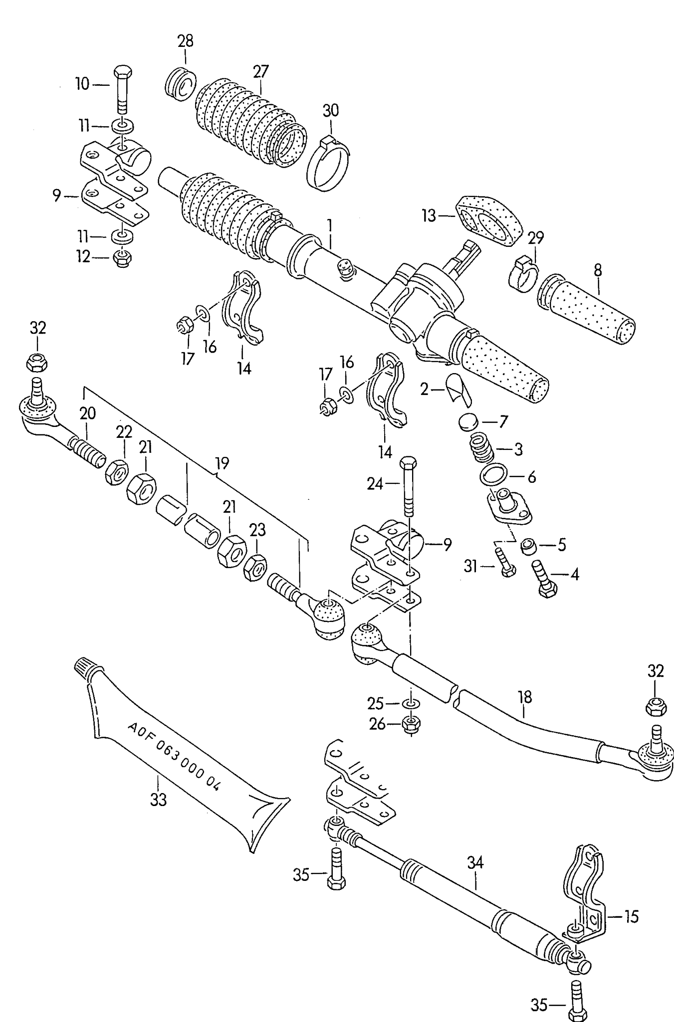 Номер 18 е цялата щанга, не само шарнира. А номер 34 е амортисьор за кормилната рейка т.е. гаси вибрацийте във волана.