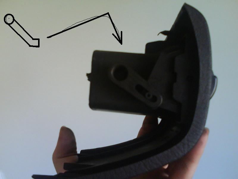 Колега, тези дето си ги очертал в червено "джинджифарки", се свалят като в долната им точка на очертание направиш лост с отверка и те излизат нагоре, но преди това трябва да бръкнеш през решетката им и да развиеш едно винтче (ще го видиш като погледнеш през решетката). като ги свалиш ще видиш това дето съм ти снимал. Трябва като въртиш това за отворено и затворено накрая да щраква и на напълно отворено и на напълно затворено, за да ти се отварят сами значи не щраква. Огледай пластмасата - може нещо да трябва малко да се поизпили ако се е деформирало от годините и слънцето, може и да не може да се оправи. Успех в начинанието !