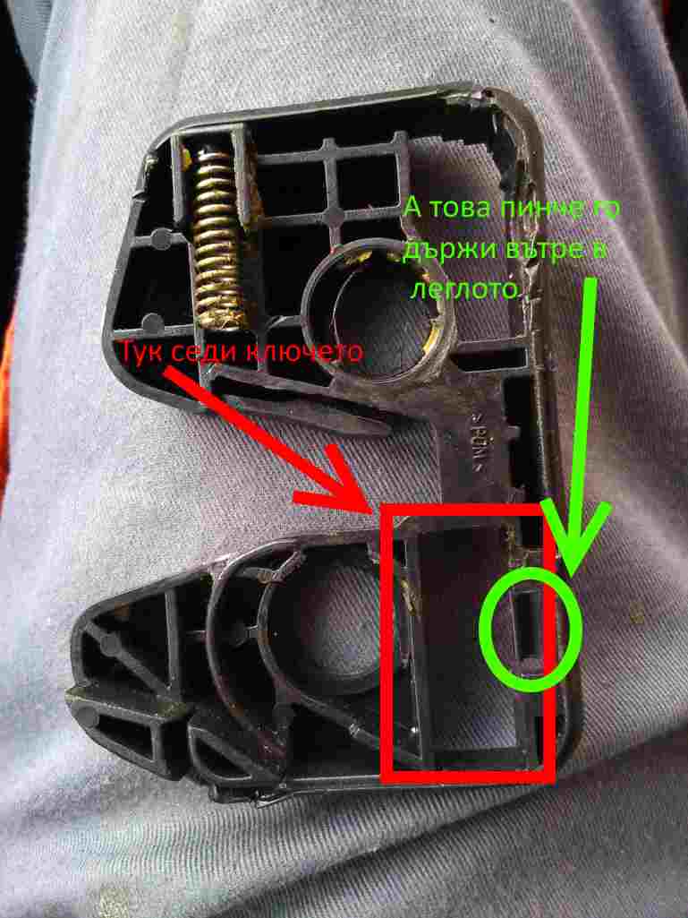Внимавайте с разглобяването, че бравата е на две части едната пластмасова, другата метална, ако има някой от Пловдив мога да му кажа от къде и за колко, може да поръча или само ключето или ако реши цялата брава.