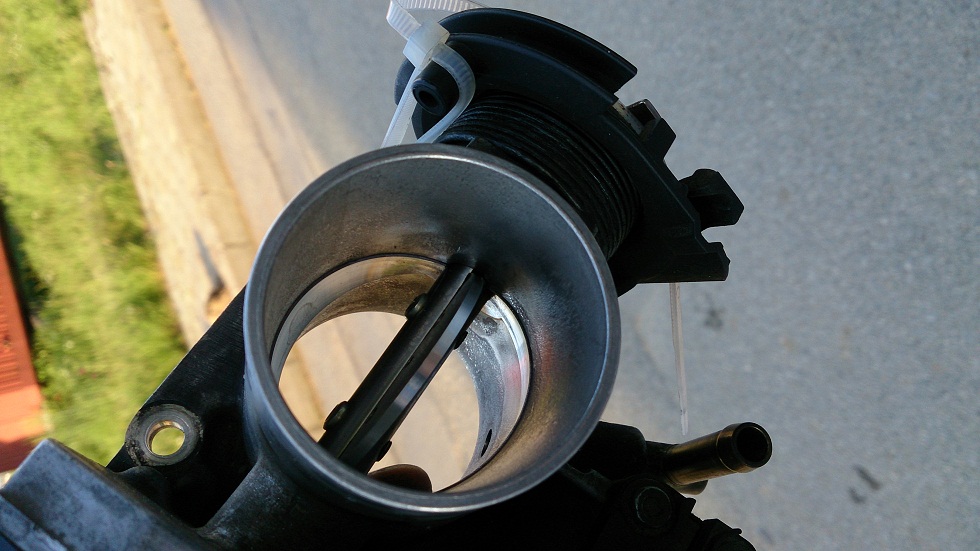 едит: вързах частта която се свързва с педала за газта със свинска опашка - така дросела е в отворено положение - и много по-лесно се чисти, иначе усилието е доста по-голямо да го придържаш, може да е полезно на някой, който иска да прави процедурата, затова и направих снимки. А трудните места ги чистих с тампончета за уши - свършиха много добра работа