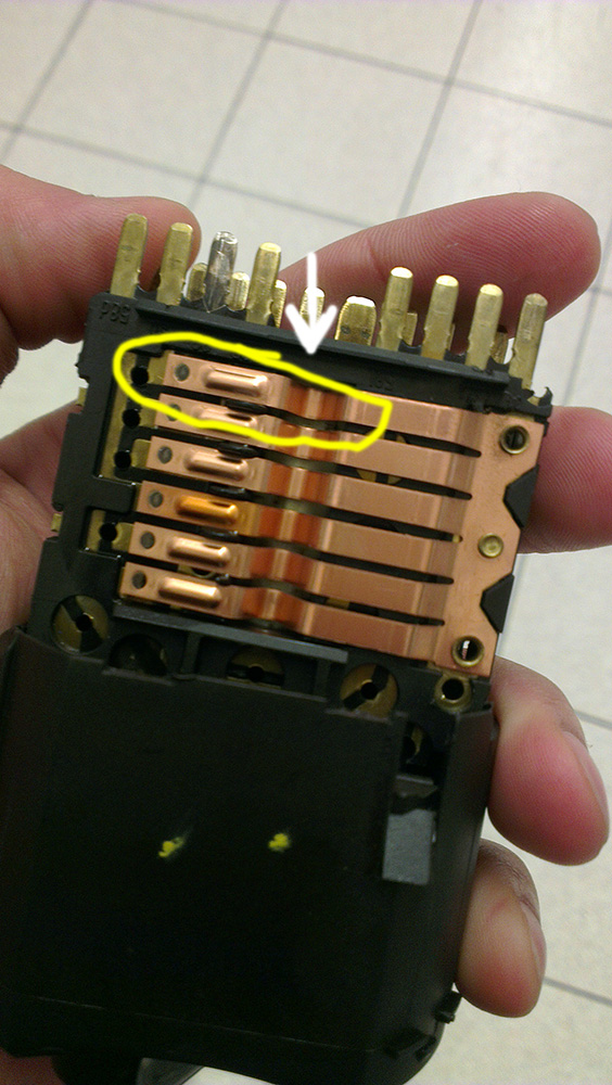 Прилагам снимка, ако някой срещне същия проблем. Самата пластмаса която служи за корпусна обвивка се състои от 2 части. Самите части трябва много добре да са притиснати една към друга, защото иначе пластините им се променя положението и не контактуват така както би трябвало.