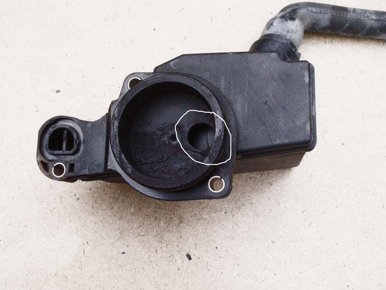 Маркуч си намерих чисто нов, но цял който е от сепаратора до въздушния филтър. ще го отрежа по средата и ще си сложа там датчика, който така и не разбрах за какво е. Сепаратора ми се вижда здрав, защото след като го изчистих хубаво вътре клапата започна да си работи. На изхода на сепаратора като махнах пластмасовия накрайник за маркуча (това което съм оградил на снимката по-долу)