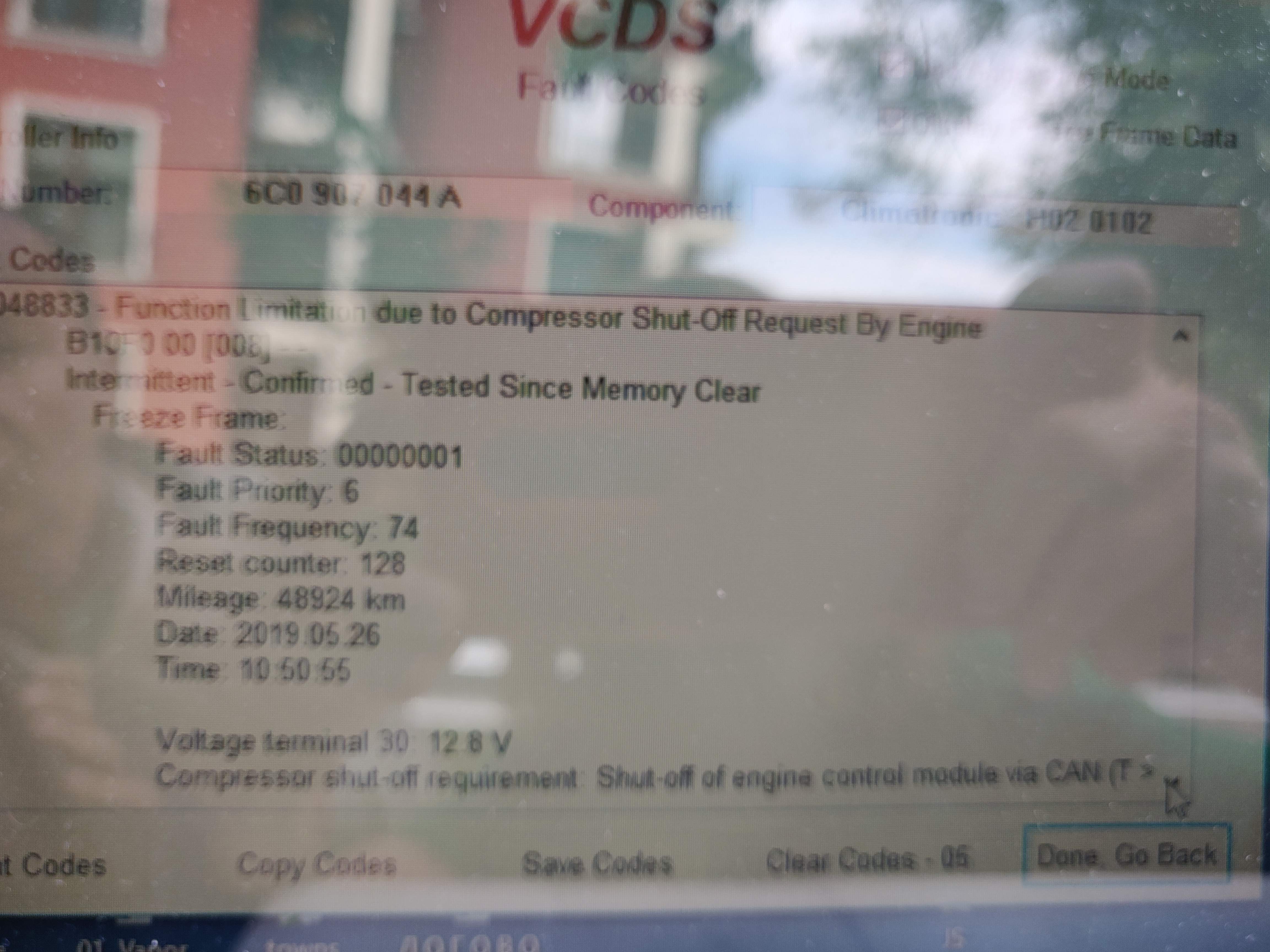 Не установих проблем. Сервизът, който използвам не откри нито грешки, нито нищо. Загадка беше дори каква е връзката между компресора на климатика и спирачките.