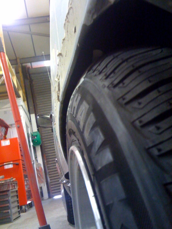 За да мога да карам нормално, със 175R13 отзад трябваше да разширя малко калника, иначе се суркаше малко страницата на гумата при натоварена кола. Слагаш един крик от вътре и разтваряш, естествено внимаваш да не се нацепи боята.