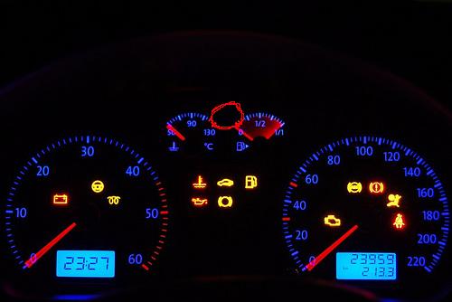 Бих искал да попитам другите, които имат такъв модел Поло и го карат от повечко време (защото моето е на 1 седмица), дали има сигнална лампа на таблото между индикатора за ниво на горивото и този за температурата (над тях), и ако има каква е тя?