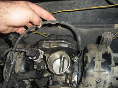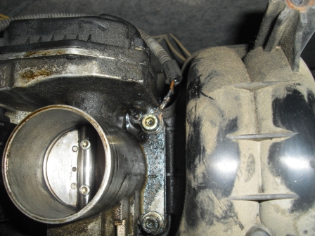 След като махнах филтъра забелязах че един кабел маса (прика4ил съм снимка) се весеше единственото място където може да се закачи е на дросел клапата. Интересно е 4е преди да го закача с ом метър премерих между маса и клапата и нямаше връзка изобщо.
