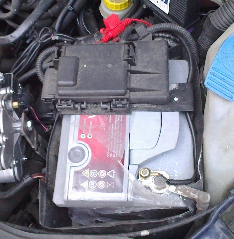 Здравейте,може ли да ми кажете какво е това върху акумулатора (на снимката), и как да го махна, за да си махна акумулатора. Като зазидано е,не помръдва. Би трябвало да има някакви щипки,но по никакъв начин не успявам да го помръдна. Благодаря за помощта предварително!