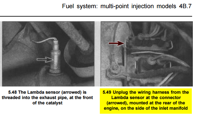 Като застанеш пред колата, вляво от моното има две букси... едната е малка с два пина - мисля че тя беше за ламбда сондата, и до нея една голяма (грубо около 5 сантиметра), която беше с 3 пина....