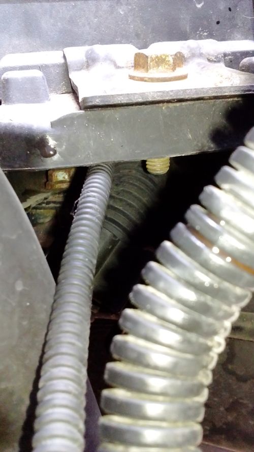 Да излишен е кабела, минава под тръбата за високото налягане на хидравликата и като ми сваляха тръбата за ремонт, хайванина ми беше разкачил тая букса и се мандахерцаше свободно, ама счупил крепежа, вместо да стисне и изкара буксата. Доста време се чудех какво чука и накрая я открих, залепих я с едно лепило за метал, като пластелин, там където си беше.
