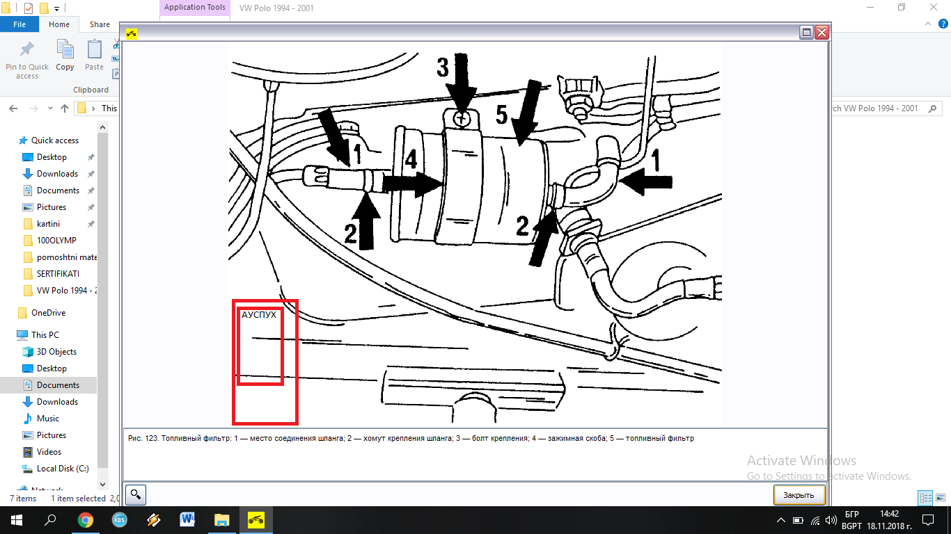 Поло АЕХ 1.4, 1997г. - Посока на гориво за смяна на горивен филтър