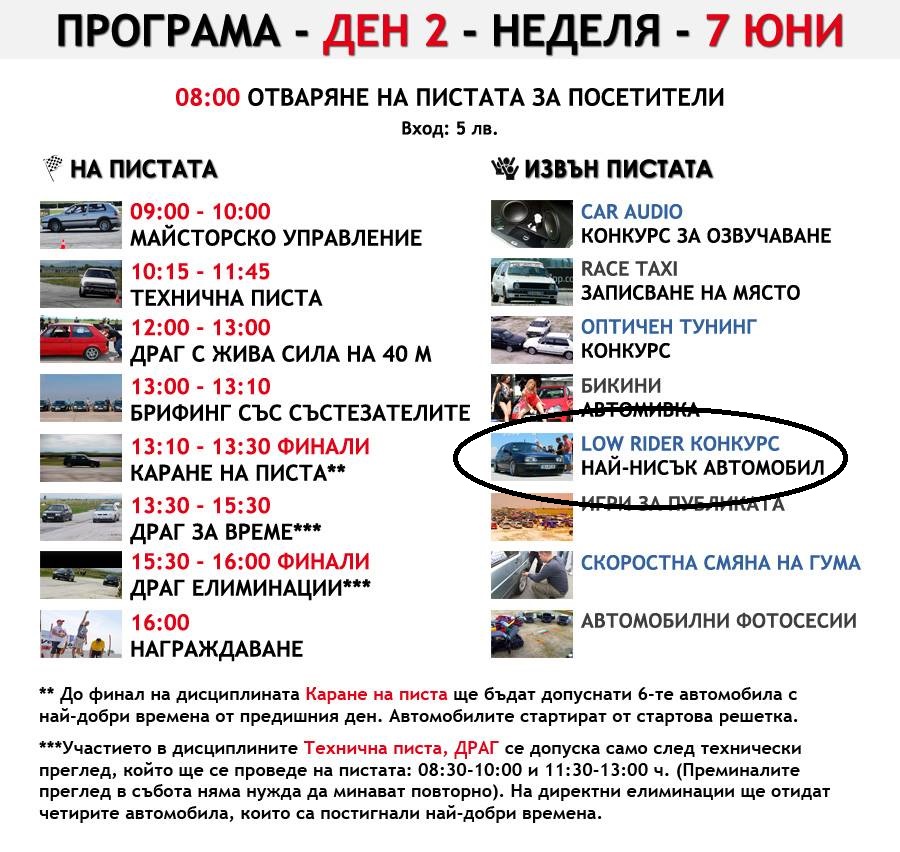 И разберете всички, които четат тука, няколко пъти се написа вече, това мероприятие не е за печалба, а от фенове за фенове! Парите, които се взимат за вход отиват за разходи, наем писта, линейки, пожарни, диджей за публиката и т.н.! амОн