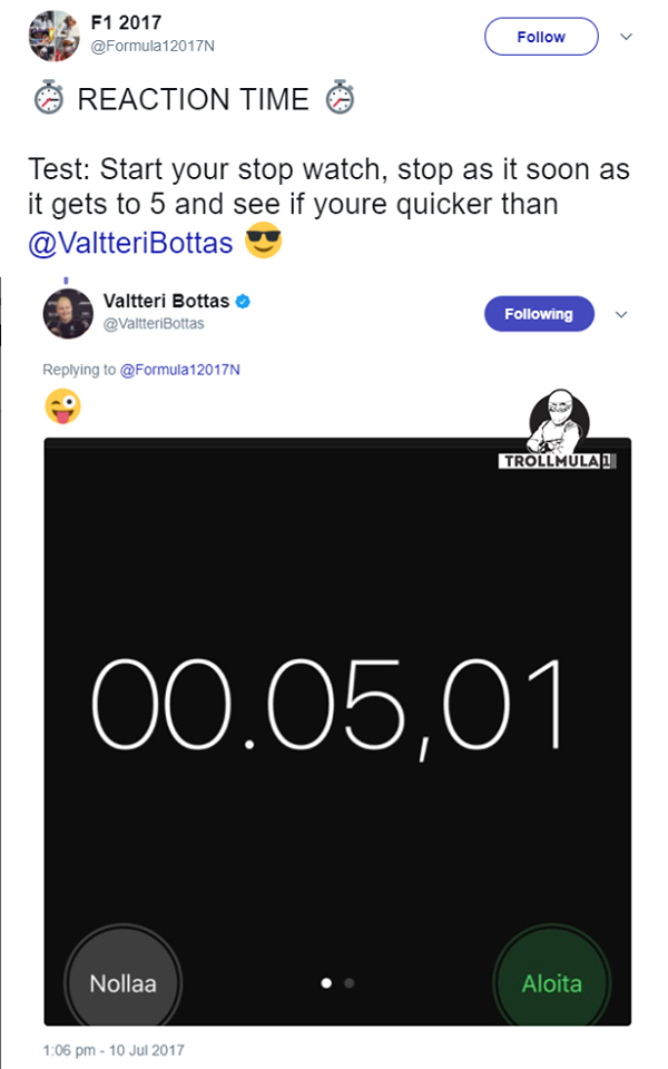 Колегата в офиса пробва старт "Ала Розберг" и в един от случайте упся да оцели 00.028 :D