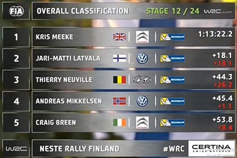 Аз съм си фен на Jari-Matti LATVALA (VW Polo), който предишните 2 години успя да спечели във Финландия, но тази година Meeke беше просто недостижим и бавно и напоително натрупа преднина като спечели 8 от 23-те етапа до момента.