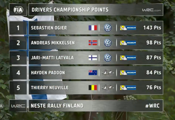 Шампионатът 2016 според мен е един от най-интересните в последните години. Рали Финландия е първото от втората половина за сезона, а до момента както се вижда от 7 състезания има 2 победи за Ожие в първите 2 старта и после все различни победители. Т.е. 6 победителя за 7 състезания. Ожие обаче (почти) винаги е на стълбичката и съответно запазва солидна преднина.